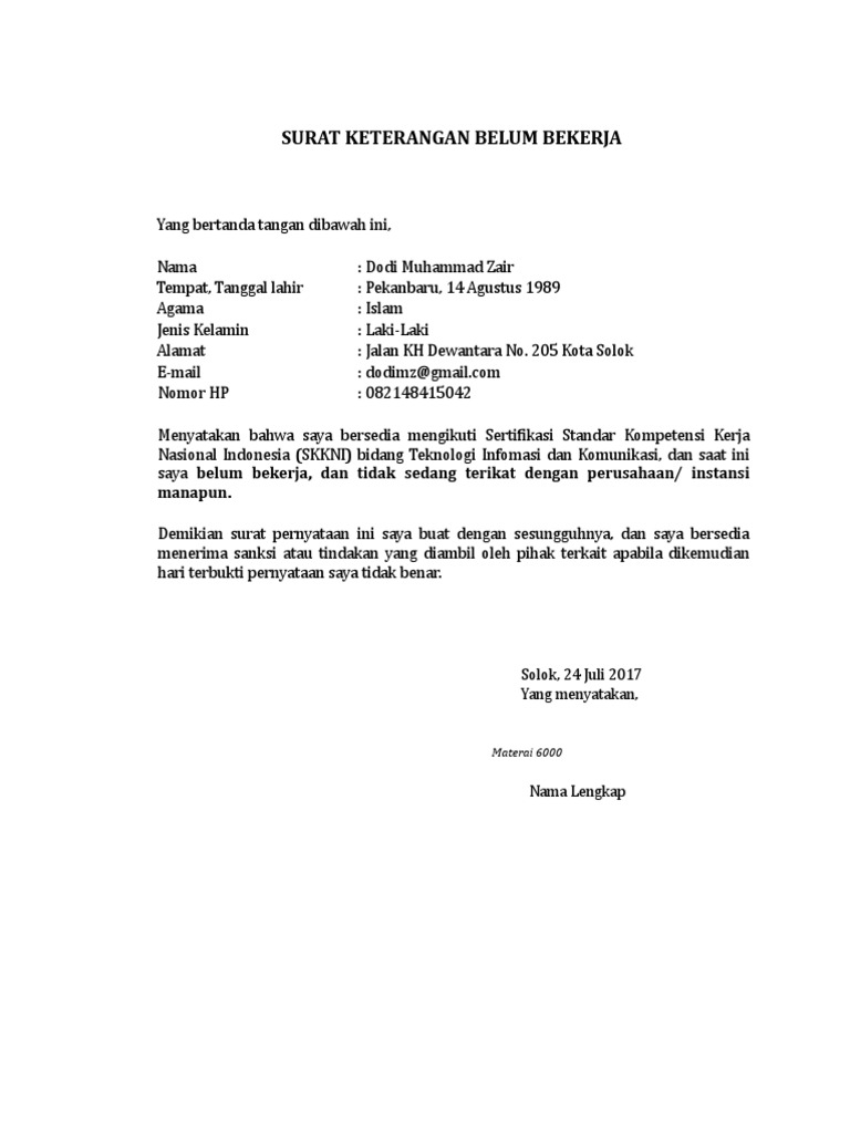 Contoh Surat Pernyataan Sudah Tidak Bekerja Di Perusahaan - Perlu Contoh Surat Keterangan Kerja Cek Semua Disini - Contoh surat pernyataan tidak pernah dijatuhi pidana.. Contoh surat pernyataan tidak pernah dijatuhi pidana. Contoh surat pernyataan tidak sedang bekerja. Surat pernyataan pribadi tidak perlu menggunakan kop surat. Contoh surat pernyataan tidak ikut bpjs biasanya surat pernyataan ini dibuat oleh peserta bpjs ketenagakerjaan perusahaan yang sudah habis kontrak, resign, atau pindah tempat kerja. Berikut beberapa contoh surat pernyataan yang biasa berlaku di kalangan masyarakat.
